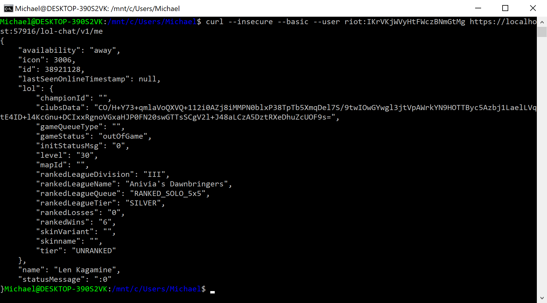 So on startup, LoL picks out some port and a password before loading everything up. A quick ping onto the port shows it is being used while LoL is open.